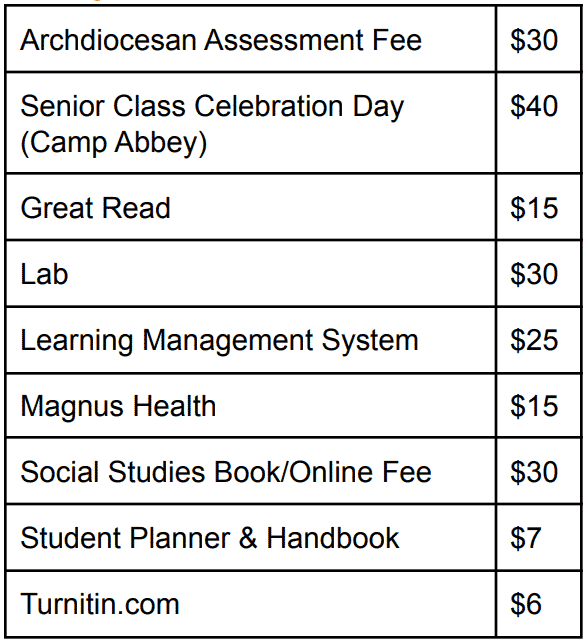 Parents have the opportunity to pay their son’s Grade Level Fee, online only, anytime from July 1 – July 31, 2022. This opportunity will allow families to ‘offset’ the required beginning of the school year fees for which payment is required at the August Student Orientation. Additional course-specific fees and/or optional purchases will be due at the August Student Orientation.