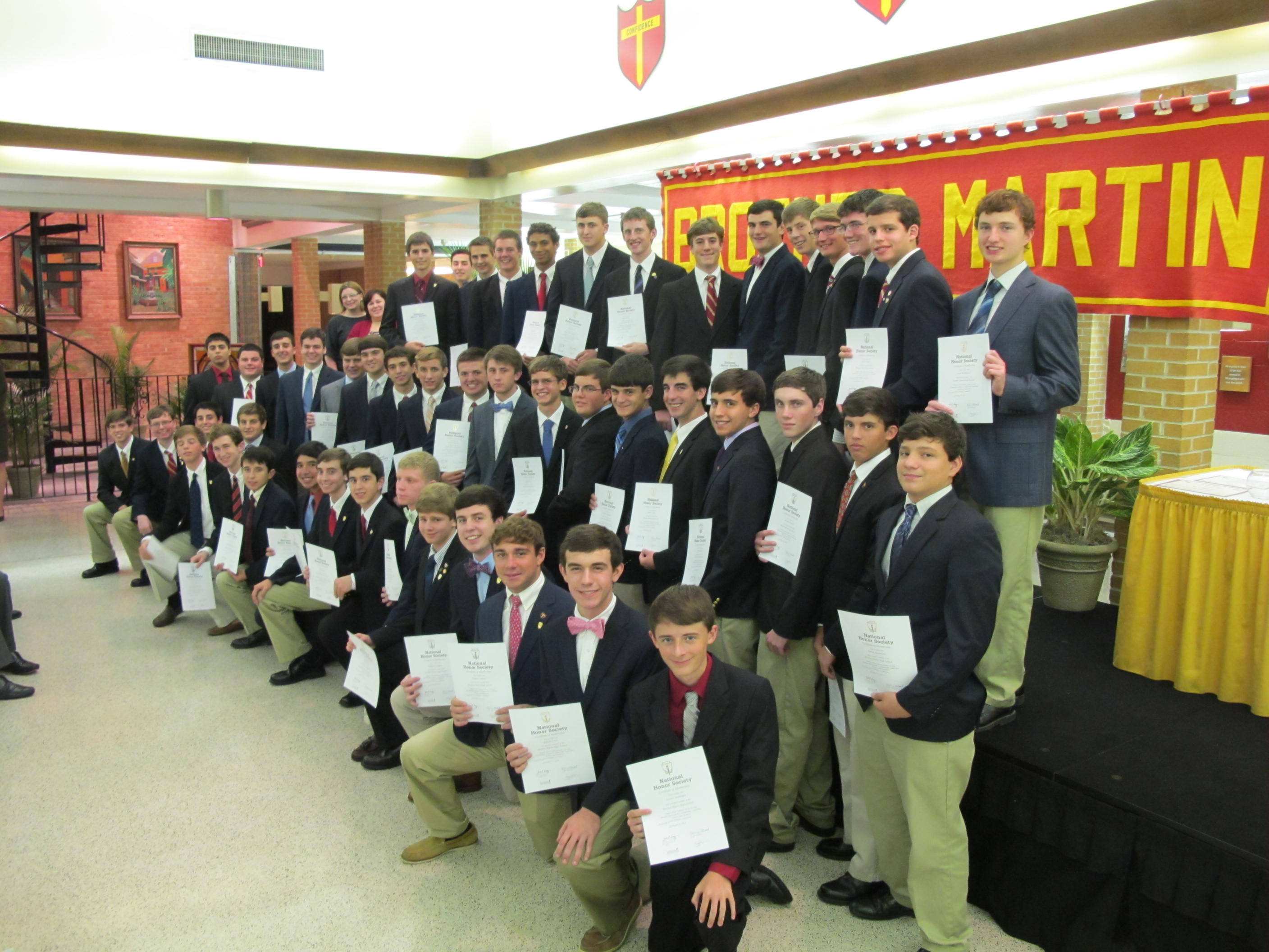 One hundred fifty Crusaders from various student service, academic, and leadership organizations were officially “inducted” into their clubs this week at the Fall Induction Ceremony held in the Benson Mall. Gabrielle Macaluso, Assistant Principal for Student Services, and Marilyn Meyn, Coordinator of Student Activities, served as the Masters of Ceremonies for the evening as the leaders of each organization–Student Ambassadors, Chi Alpha Mu, Mu Alpha Theta, Excalibur National Honor Society for Excellence in Science, Builders Club, Key Club, National Honor Society, and Student Council–read a brief description of their club’s work, followed by a roll call of club members for the presentation of club pins and/or certificates. John Starr, Assistant Principal of Marrero Middle School and a graduate of the Class of 2002, provided remarks, showing the students how their high school service and leadership will lead them to more active involvement in college and beyond. The evening ended with a reception. Congratulations, Crusaders!
