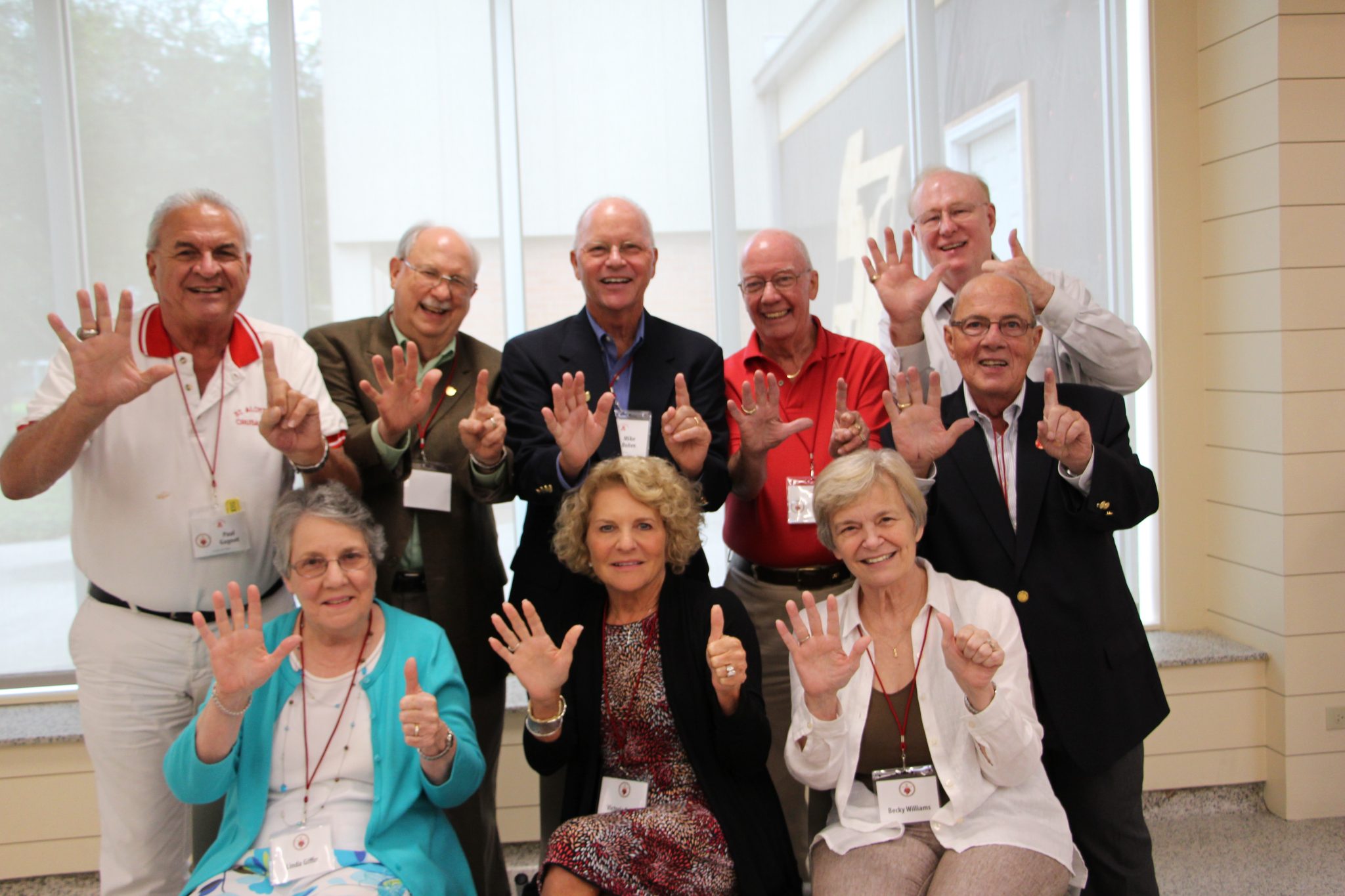 Following mass, a reception was held in the Tom and Gayle Benson Mall with catering by Rommel’s and Scot Craig ’80 of Katie’s. There was also a chance for classmates to show their school spirit with a cheer led by Paul Gagnet ’66 SA. The Class of 1965 SA also showed school spirit by having the most class representatives in attendance.