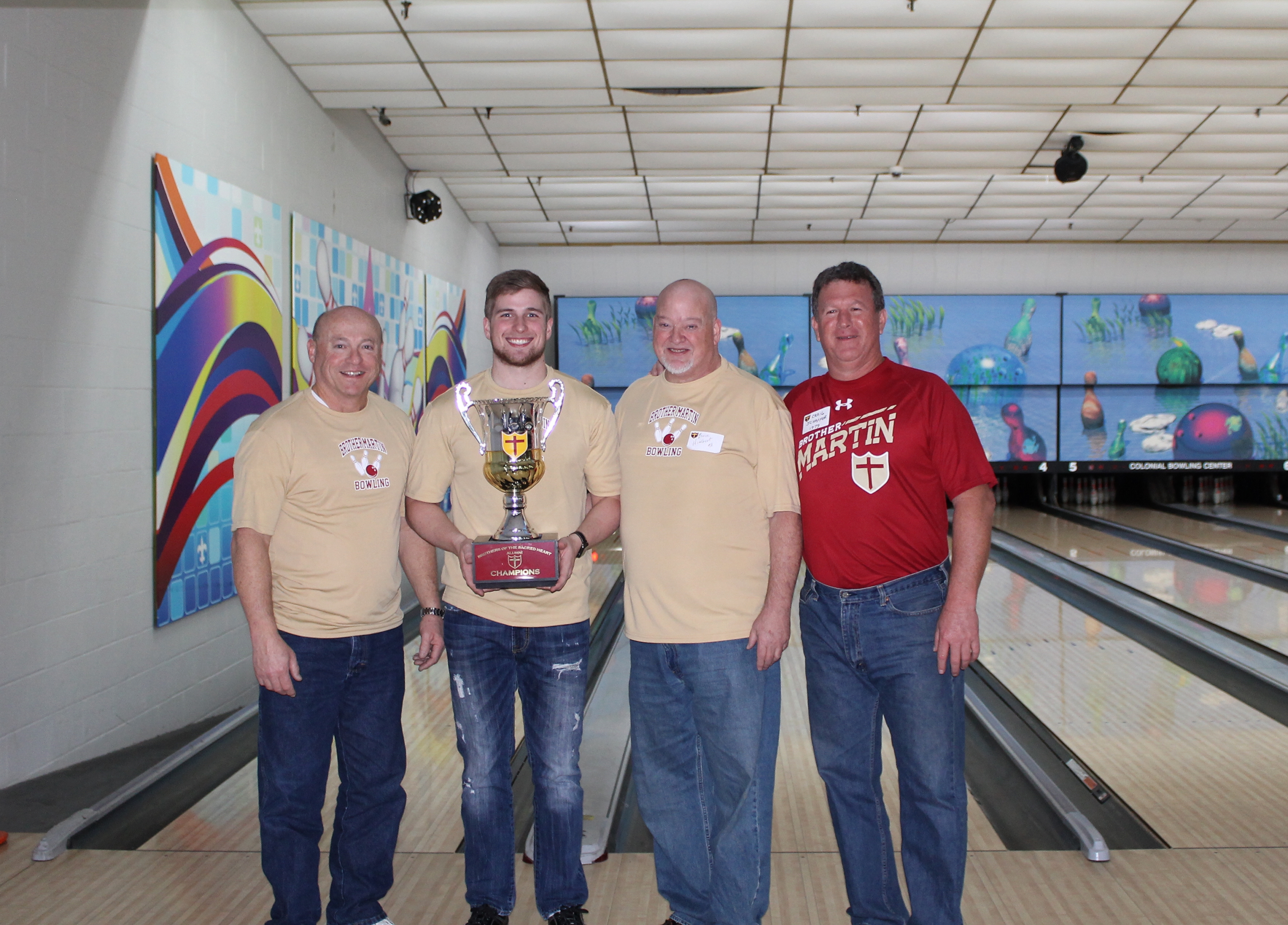 Seven teams competed for the inaugural championship title. Team Averaging with a 216, “Team 5” defeated “Team 1” in the finals. The championship team members were Craig Schaffer ’79, Joseph Musso ‘77, Blaise Himbert ’10, and Bruce Himbert, Sr. ’78. Coach Himbert bowled ten straight strikes and ended up with a score of 289 in the final match.