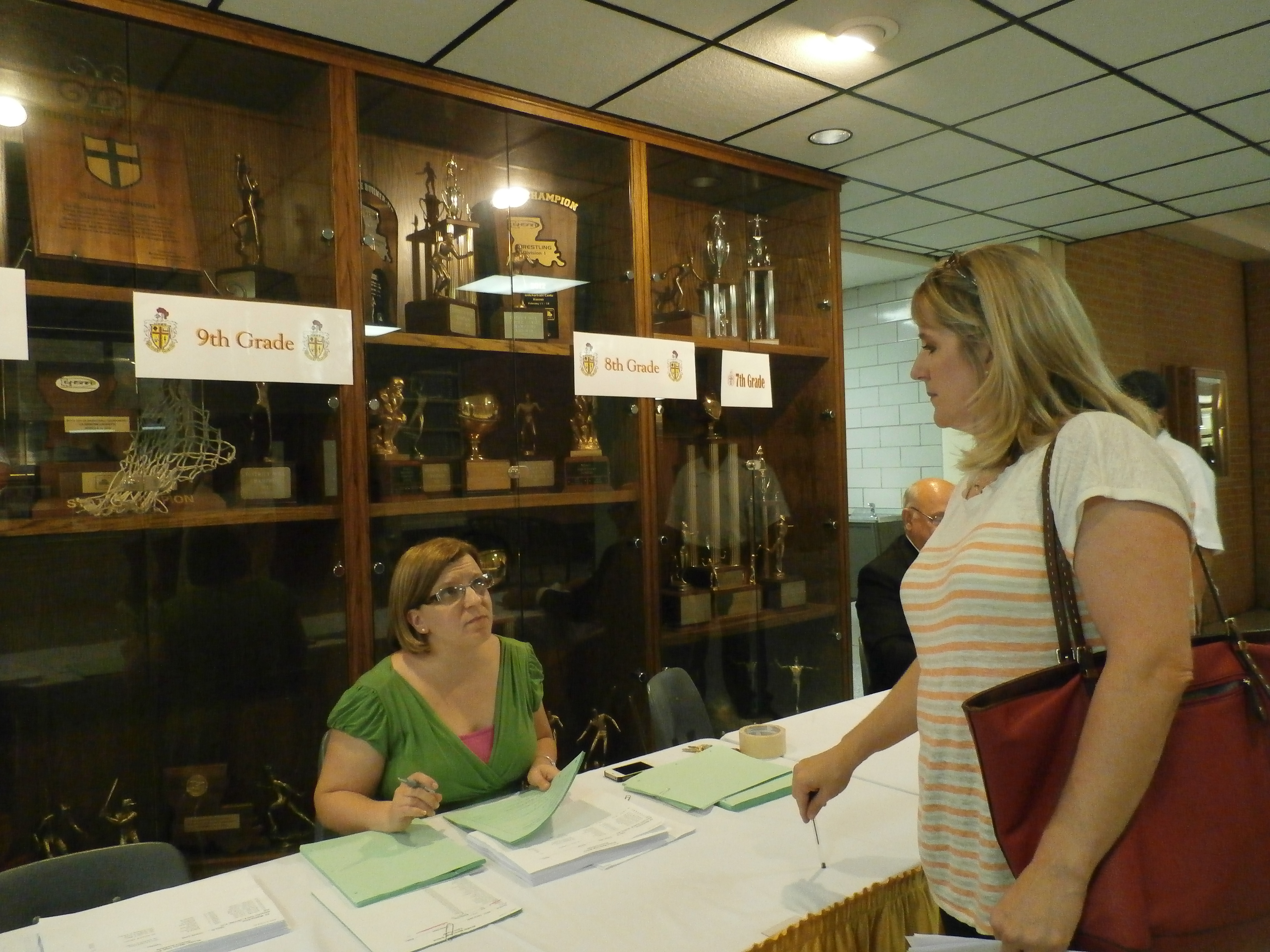 At the first Back to School Night, Crusader families came to campus and spent an evening in their son’s shoes. Parents took their son’s schedule and walked the halls to meet all their teachers for the 2014-2015 school year. Alumni and members of the Ladies of the Shield volunteered to help guide the current parents through the buildings, hand out schedules, and work the tuition raffle table.