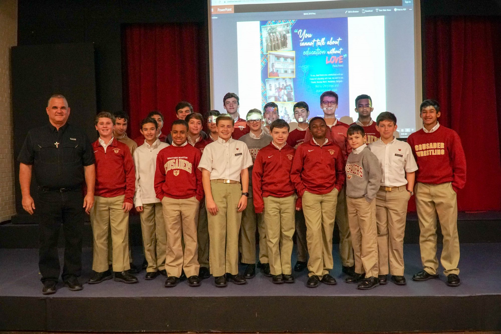 Our religion classes were fortunate enough to have Brother Chris Sweeney, S.C. speak with them about his life and vocation in Africa on Monday, December 9th. “A graduate of Catholic High School in Baton Rouge, Bro. Chris was one of four Brothers from around the Institute chosen by the General Council in Rome as volunteers to begin a new mission endeavor in Amatongas, Mozambique in 2010. Under Brother Chris’ leadership and supervision, the four Brothers transformed what had been an abandoned and dilapidated school into an ever-growing and ever-improving resident and day secondary school, now called Sacred Heart Secondary School.” (Brothers of the Sacred Heart website)