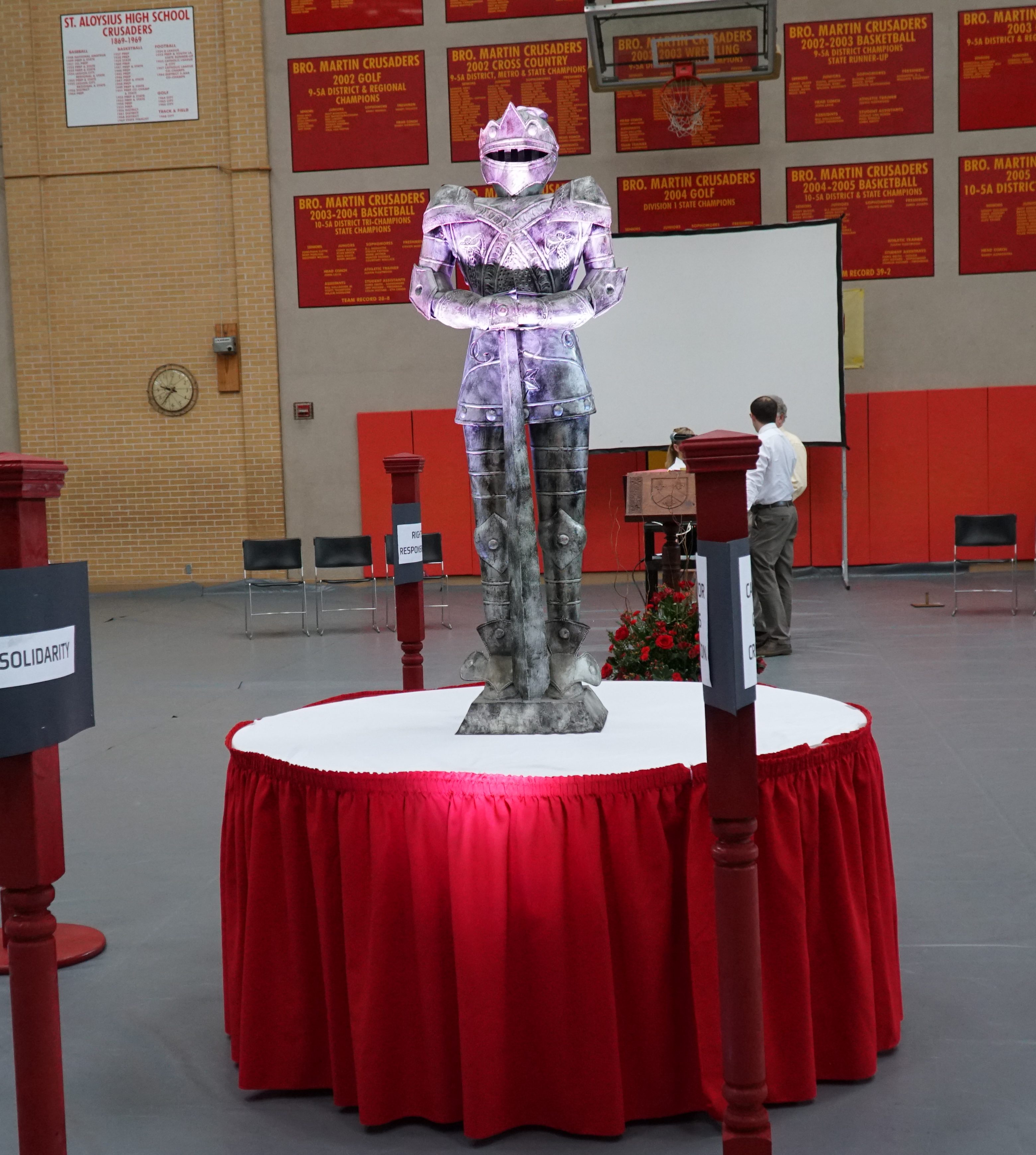 During this Lenten Season, our Brother Martin school community celebrated our annual Social Justice Liturgy on Friday, February 23rd. Mass was celebrated by Fr. Kyle Dave ’89, Pastor at Our Lady of Perpetual Help in Belle Chasse. The Liturgical theme of our Social Justice Mass was shaped on our commitment to Catholic Social Teaching. In the center of the Conlin Gymnasium stood a Crusader surrounded by seven pillars. Each pillar, built by a group of Senior Student Ministers, represented a theme of Catholic Social Teaching: Life and Dignity of the Human Person; Call to Family, Community, and Participants; Rights and Responsibilities; Options for the Poor and Vulnerable; The Dignity of Work and the Rights of Workers; Solidarity; and Care for God’s Creation. During Fr. Kyle’s homily, he touched on the seven pillars represented and asked our Brother Martin community to reflect on the extent to which each of us truly embrace these teachings in our lives.