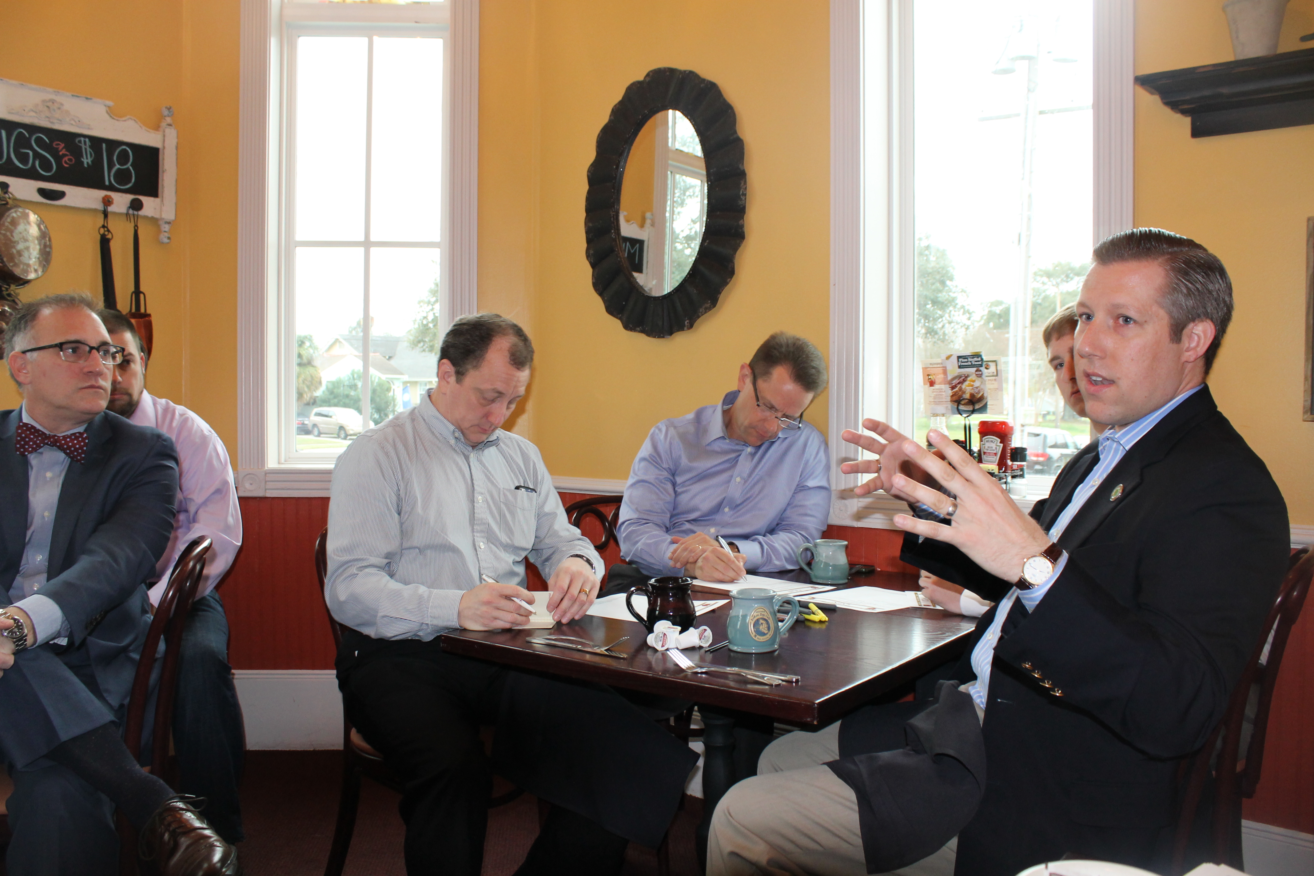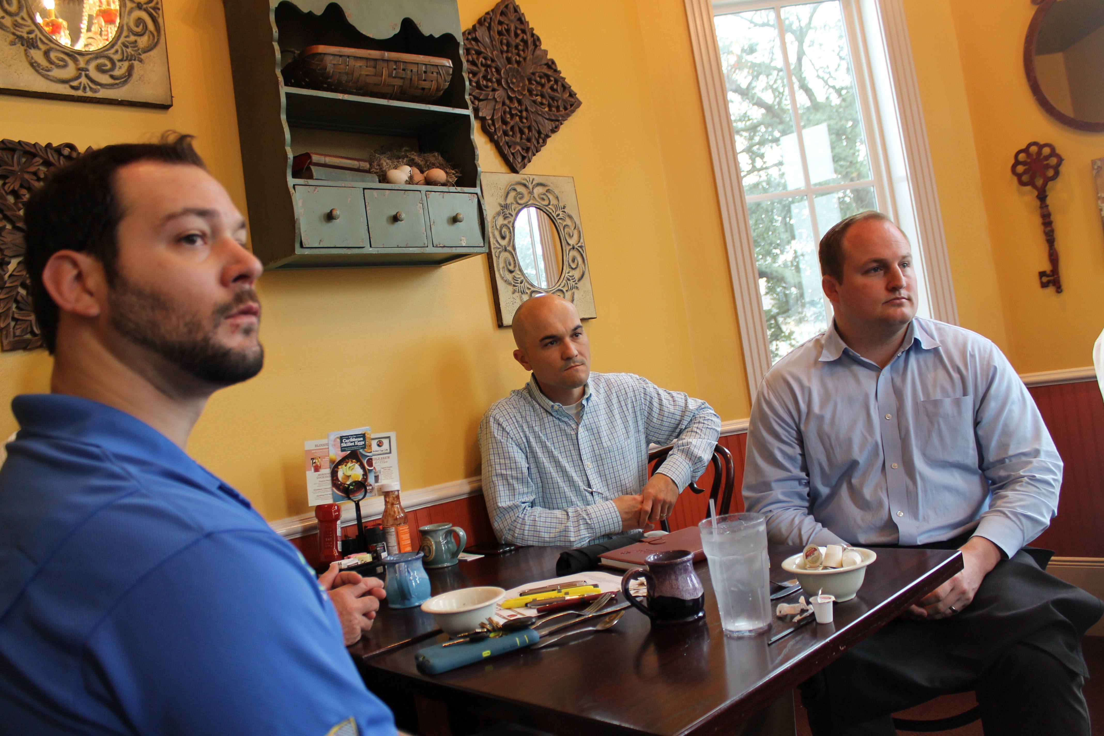 IMG_8761Members of the Crimson & Gold Network’s Oil & Energy Professionals (CGN-OEP) met on Tuesday morning at Another Broken Egg Café in Lakeview.  Tim Hemphill ’96 gave an update from the New Orleans business Alliance before a discussion of the current state of the oil and energy industry.  Ted Ralph ’72 provided compelling information from his vast experience.  Opportunities to share their expertise at Brother Martin were also discussed at the meeting. Alumni interested in joining the CGN -OEP can find out more online on Facebook and Linked-In.IMG_8759