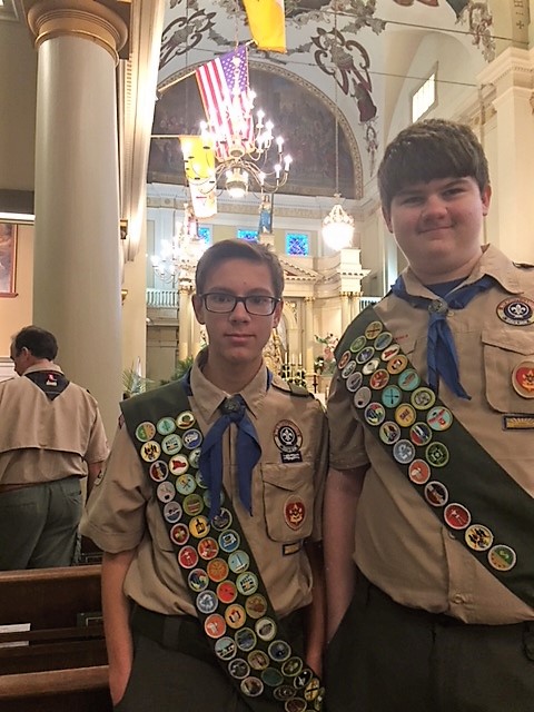 Representing Troop 230 with St. Catherine of Siena, two of our Crusaders, sophomores Jackson Long and Joshua Mendoza were honored with the Boy Scout: Pope Pius XII award.