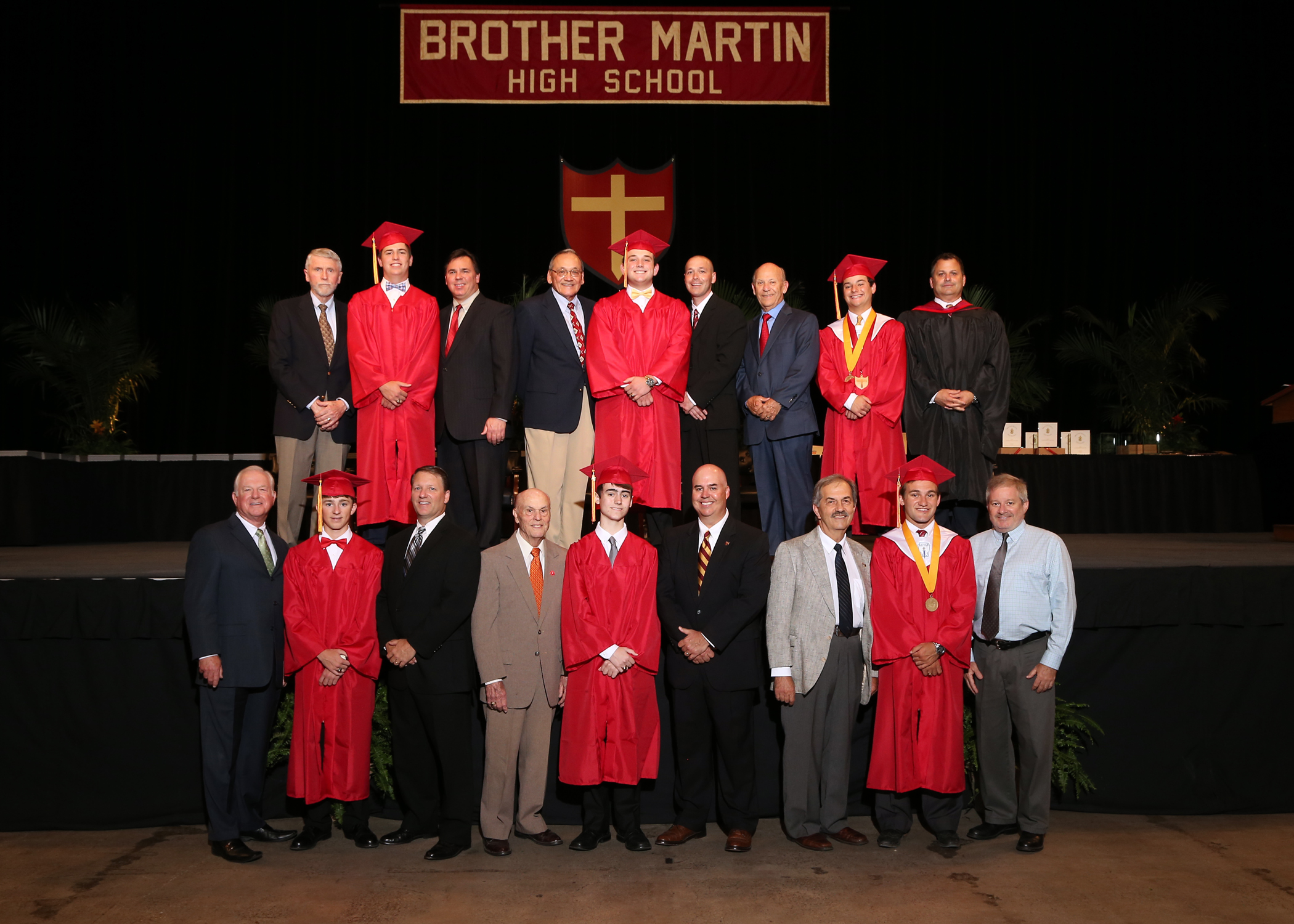Brother Martin’s 47th graduating class received their diplomas on Friday, May 20, 2016 at the UNO Lakefront Arena during the 2016 Commencement Exercises. Principal Greg Rando ‘77 and Student Council President Marvin Hudson, Jr. ’16 opened the ceremony with a warm welcome to guests and thanked the Class of 2016 for having a part in the history of the school. Senior Class President Michael Ahearn ‘16 carried the Ceremonial Shield that represents both the cross of Christ’s crucifixion and the sword point of the crusader who fights for justice as he led the seniors in the processional.