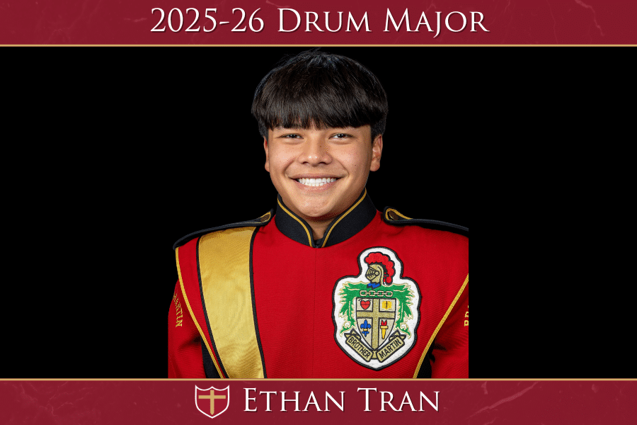 Congratulations to Ethan Tran ’26 for being chosen as Brother Martin High School’s Drum Major for the 2025-2026 school year. We would like to thank him for continuing our band’s legacy and tradition!