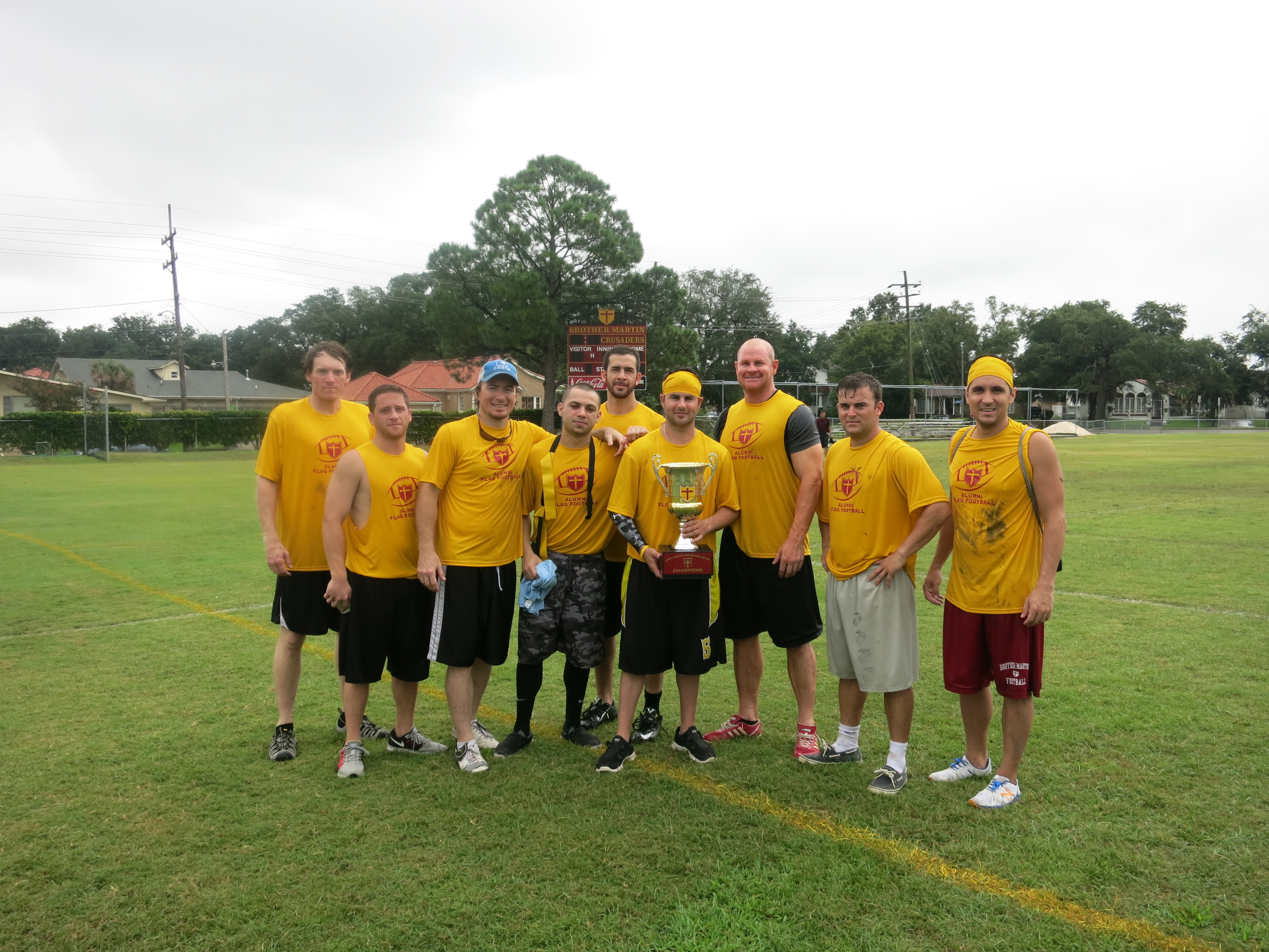 IMG_1773On Sunday morning, alumni came together to play in the inaugural flag football tournament.  On a rainy day, alumni took to the gridiron to play in a tournament amongst other alumni from all years.  Team HAMMATIME defeated the Purebreds in the championship game to take home the trophy.