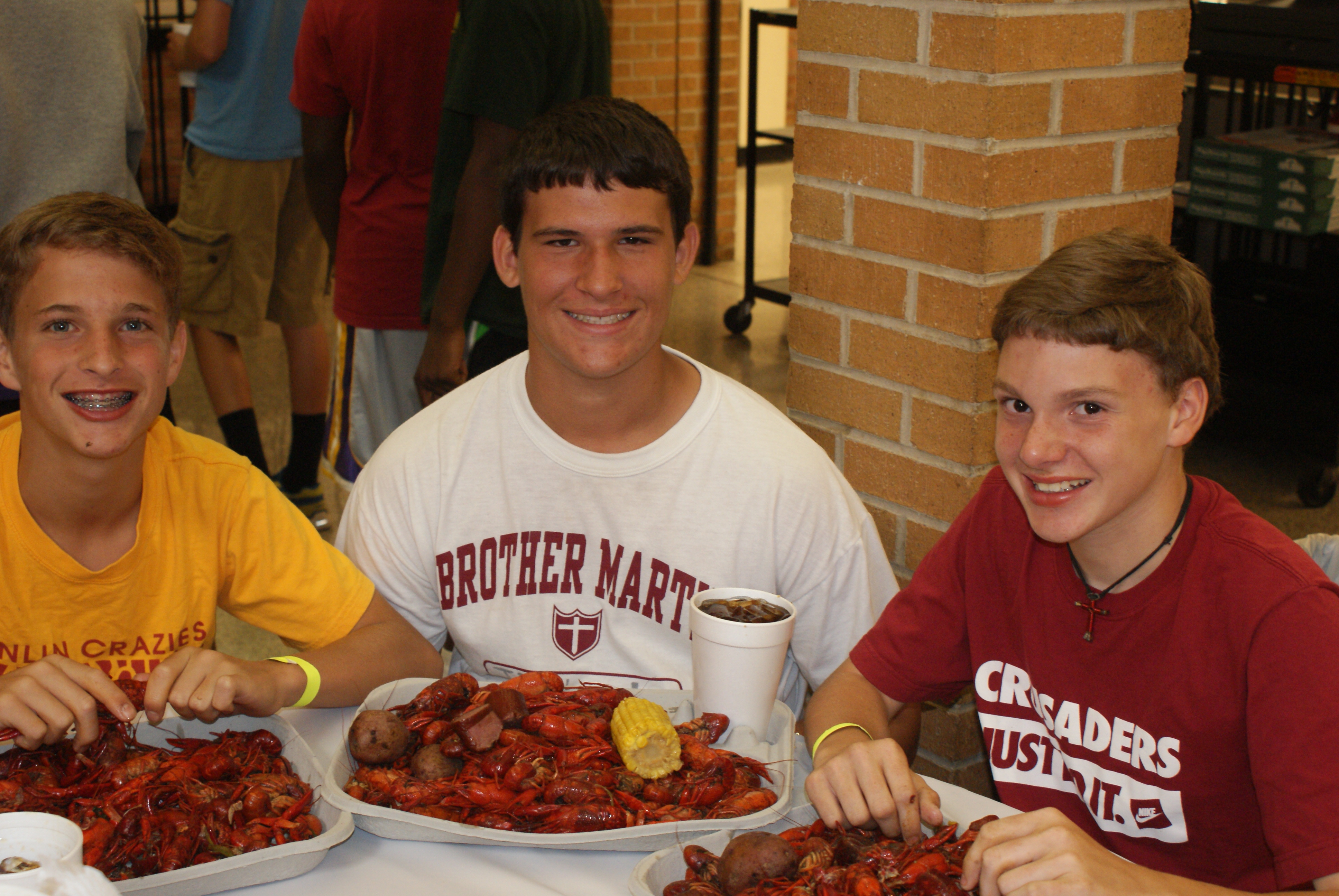 Last Thursday afternoon, when the final exam had been turned in, members of the 7th and 8th grades gathered for an end of the year bash. The students enjoyed crawfish and pizza in the Benson Mall then moved outside for more activities. In the backyard, two inflatable slip-n-slides were available along with footballs and other games. In the Aloysius gym, a dodgeball tournament was held for some between the grades competition, and pick-up basketball games took place in the Conlin gym. The 7th graders leave for Washington D.C. this Saturday, and the 8th graders will head to San Antonio and Dallas at the end of July.